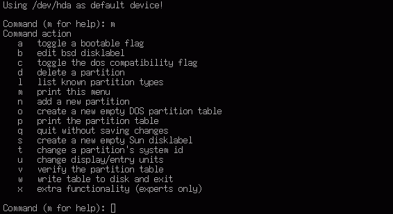 Экран справки программы fdisk